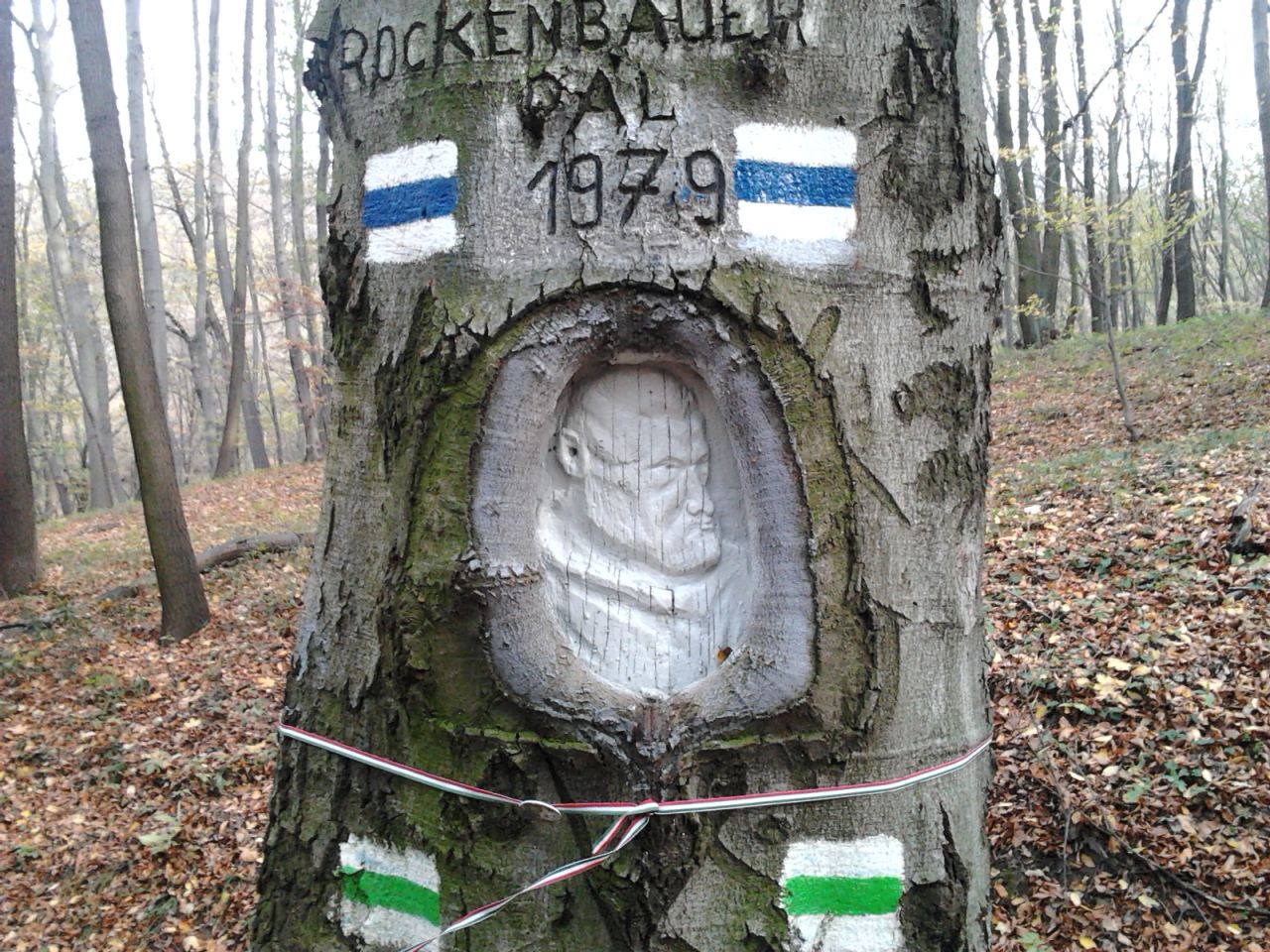 A Rockenbauer Pál-emlékfa az Országos Kéktúra vértesi útvonalán
